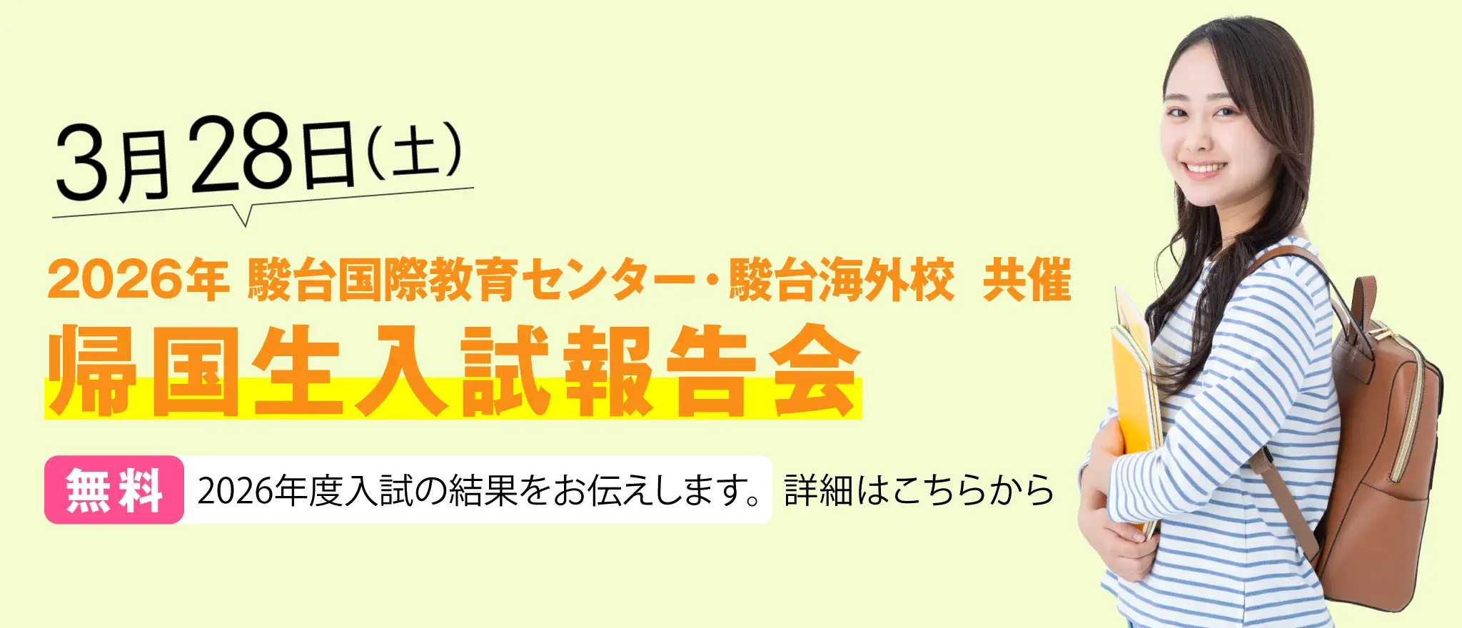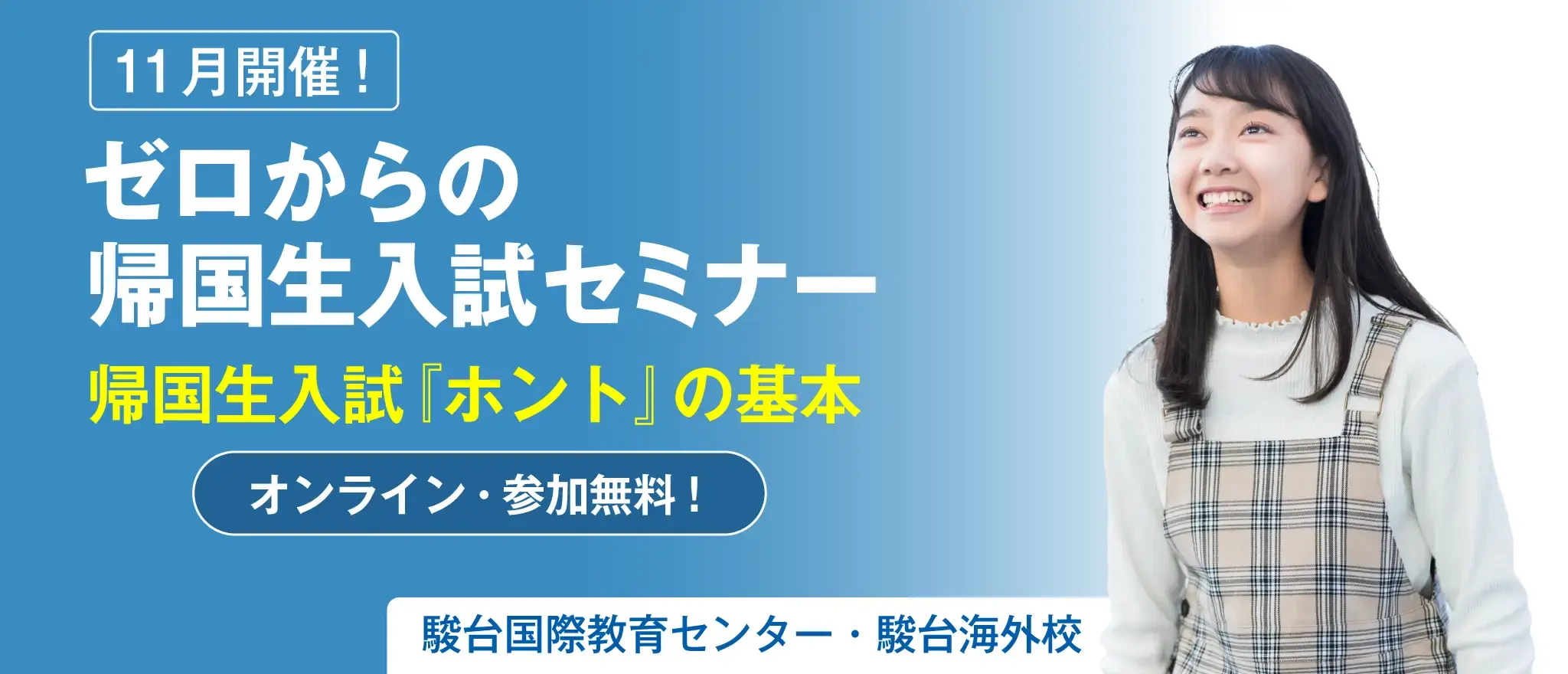 私は中3の夏に日本に帰国しました。高校受験をすると聞いた時、言葉に表せられない感情でいっぱいでした。しかし、駿台の先生方に出会い不得意な日本語での勉強と向き合う事ができ、第一志望校に合格しました。受験は恐怖感でいっぱいだと思いますが、やり切ったら必ず達成感が感じることができるので頑張ってください。